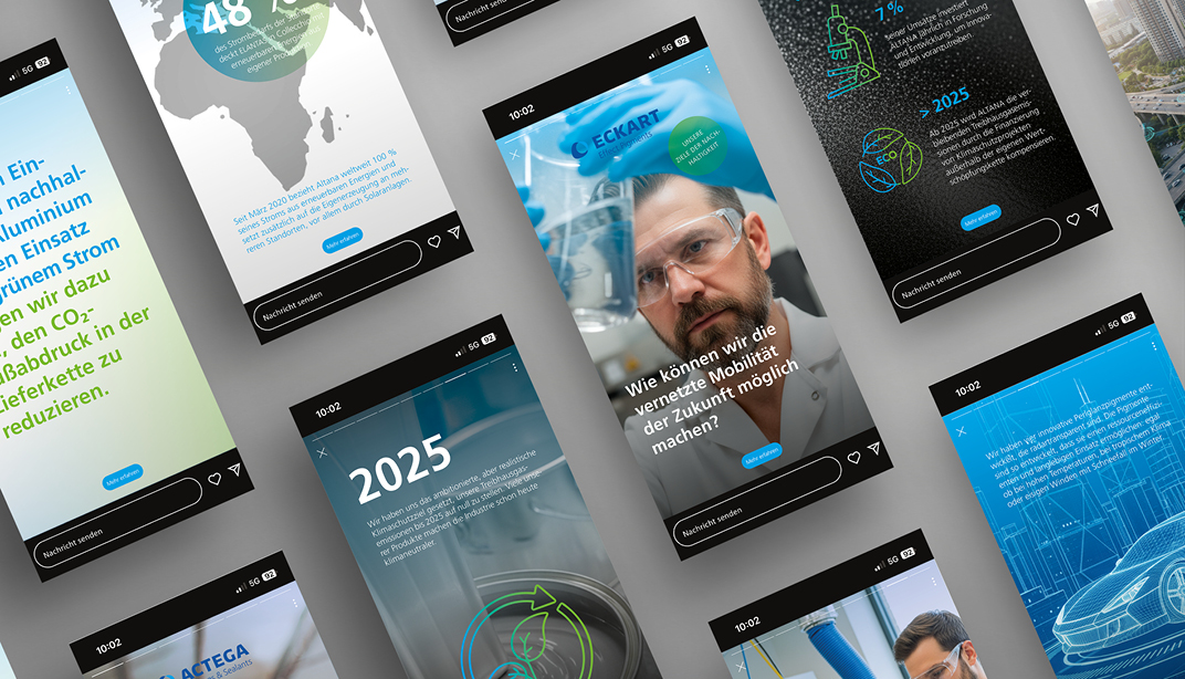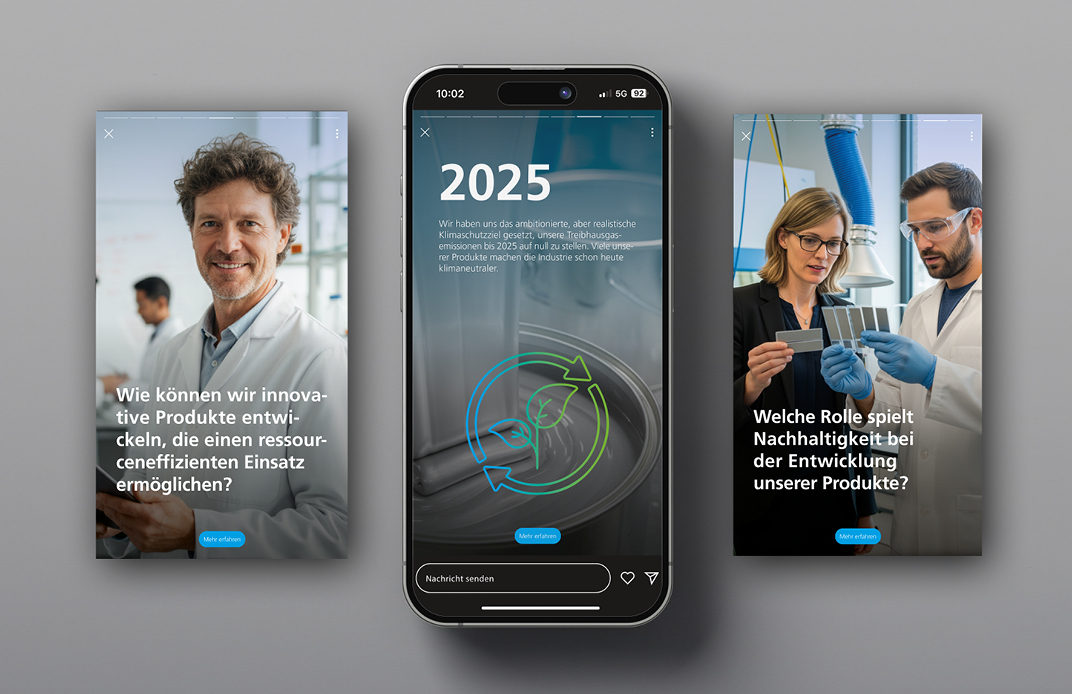 Additional graphic elements and icons in the characteristic green-blue gradient create clear visual accents and facilitate content navigation. The typographic design is based on the Frutiger typeface and uses different weights to ensure good readability and clearly mark content hierarchies.