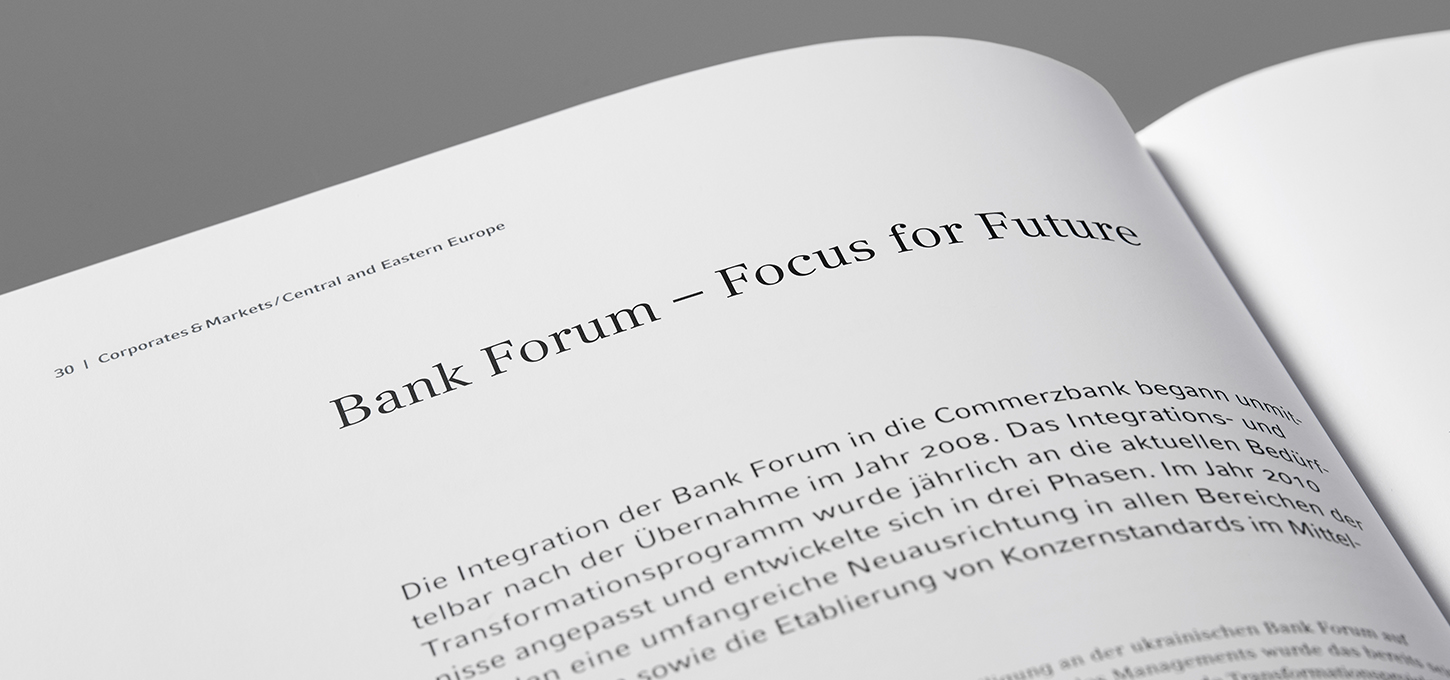 Die Commerz Business Consulting (CBC) ist die interne Unternehmensberatung der Commerzbank AG. Sie berät exklusiv die Unternehmen der Commerzbank Gruppe in der Umsetzung von strategischen Fragestellungen. Als Teil des Konzerns ist die Commerz Business Consulting »dichter dran« an den Entscheidungsträgern und gestaltet gemeinsam mit ihren Auftraggebern die Zukunft des Konzerns. Der Jahresbericht der CBC erklärt das Wirken für ein Lesepublikum innerhalb der Bank, will aber auch für externe Bewerber ein Orientierungsmittel sein. Heisters & Partner entwickelte zusammen mit den Kommunikationsbeauftragten ein Konzept, welches in der Form eines Geschäftsberichts konkrete Projekte, Ziele und Implementierungen beschreibt. Jeder Bericht stellt die entsprechenden Berater persönlich vor, lässt diese als authentische Testimonials über die Projektarbeit berichten und spart dabei auch nicht die zu bewältigenden Herausforderungen aus. Am Ende der jeweiligen Text-/Bildstrecke steht die Unterschrift des Testimonials.