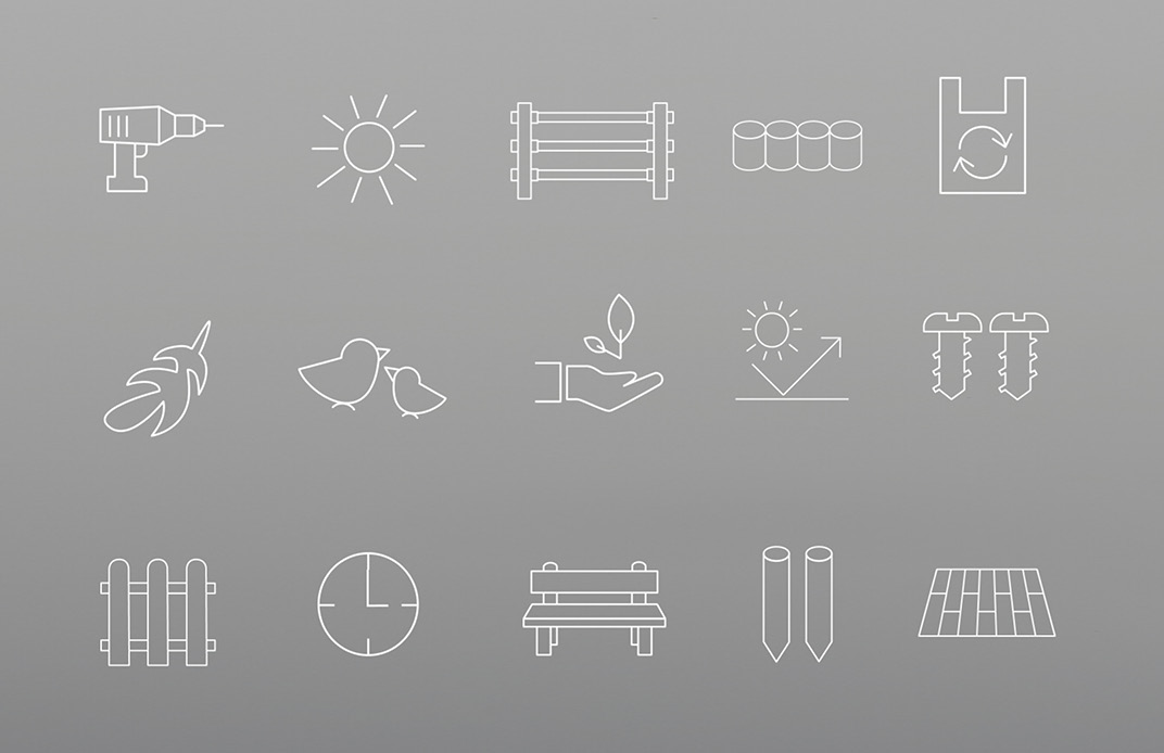 The pictograms are based on the design language of typography and translate key brand values – functionality, clarity, sustainability – into an independent, graphically reduced language.