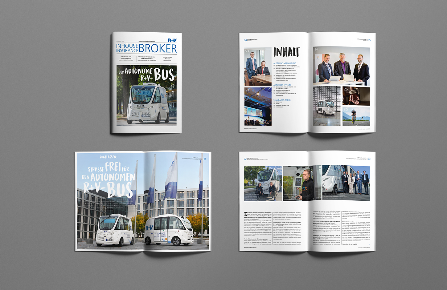 Mit dem »Inhouse/Insurance Broker« verfügt der Versicherer R+V mit seiner Filialdirektion Makler Industrie über eine spezialisierte Fachpublikation, die für die Premiumzielgruppe Industriemakler zugeschnittene Inhalte bietet. Heisters & Partner optimierte das Periodikum in einem umfassenden Relaunch, erweiterte den konzeptionellen Ansatz zeitgemäß und erhöhte die Lesbarkeit, Verständlichkeit und Emotionalität durch den Einsatz von Typografie, Infografiken, Diagrammen und illustrativen Elementen sowie einer authentischen Bild- und Fotosprache. Heisters & Partner zeichnet für die ganzheitliche Umsetzung das Magazins verantwortlich, das in einem kleinen Redaktionskreis im direkten Kontakt mit dem Auftraggeber erarbeitet wird. Die Zeitschrift stellt dabei den Kunden, in diesem Fall die kompetenten Ansprechpartner der Industrie, in den Mittelpunkt der Reportagen und erreicht so durch ein für die Zielgruppe relevantes Storytelling hohe Aufmerksamkeit. Einzelne Beiträge, Stories und Interviews werden dabei parallel in den sozialen Netzwerken gepostet und verschaffen so eine doppelte Nutzung, welche die Zielgruppen durch die hohe Personalisierung und ein zugeschnittenes Storytelling erreicht.